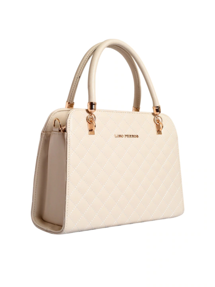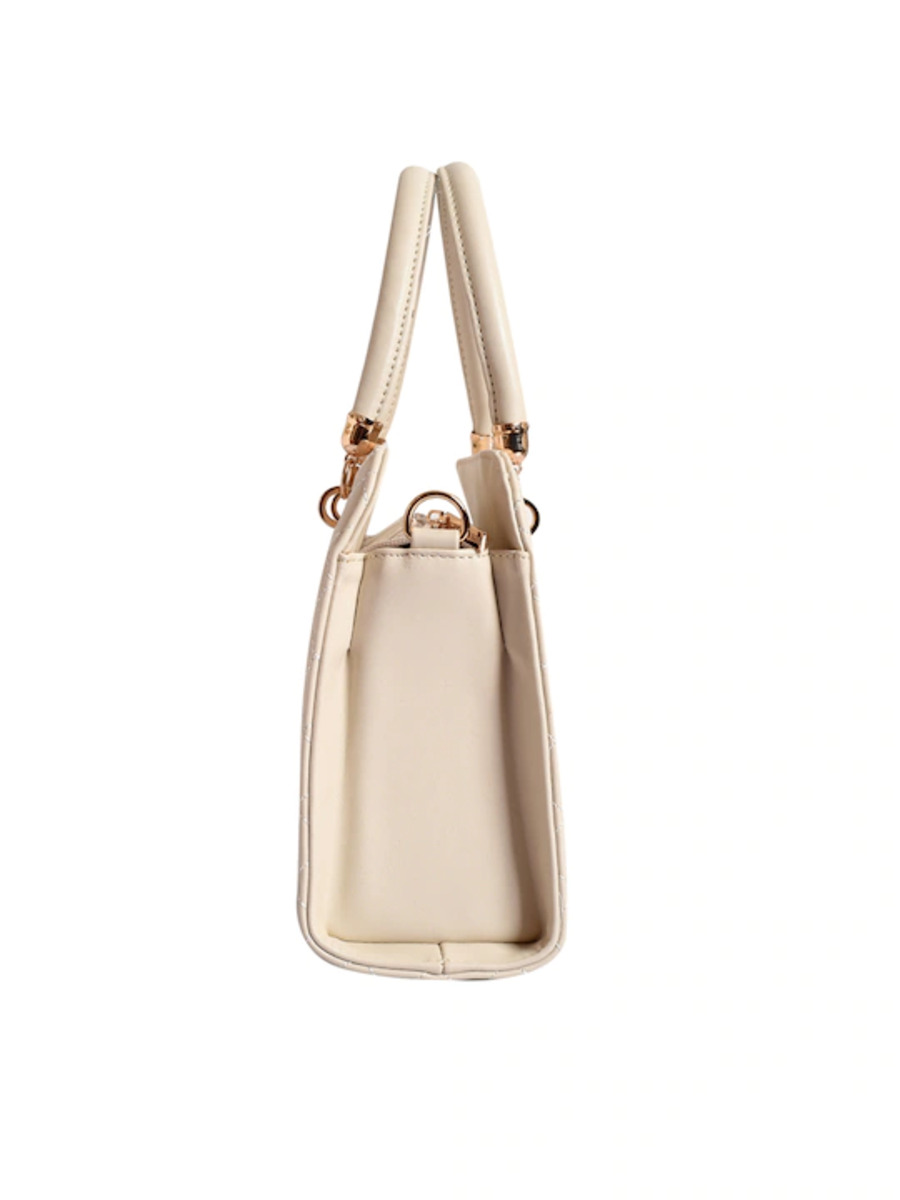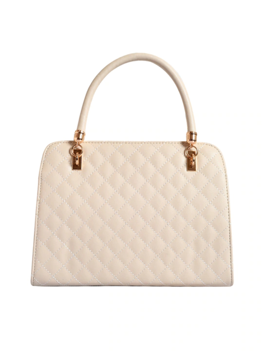 Off-White quilted handheld bag, has a zip closure1 main compartment, has a zip separator sleeve Two handles with a detachable sling strap
