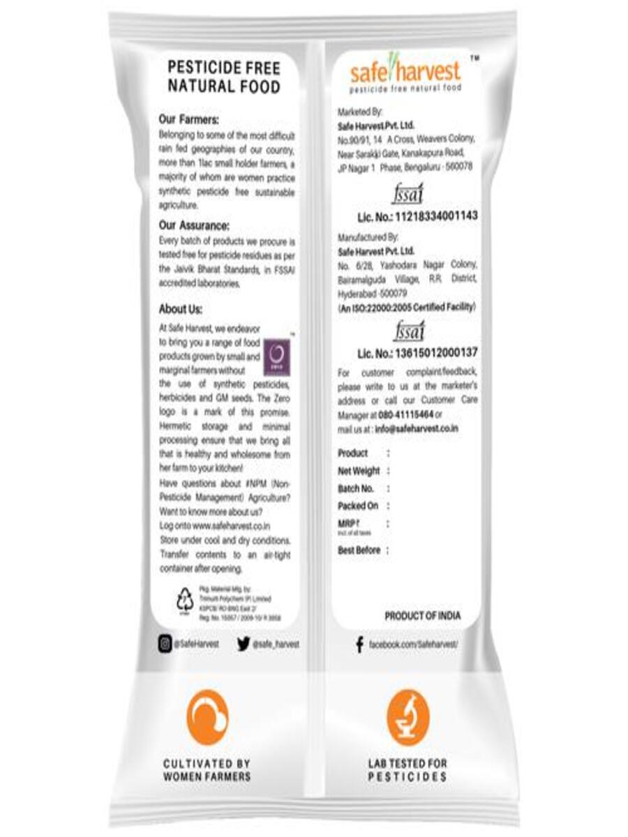 Our Sona Masoori is grown in the soils of North Karnataka irrigated from the waters of the Krishna and Tungabhadra rivers.This paddy is aged for 12 months to allow the grain attain its best consistency when cooked while retaining a fluffy texture as is a great short grain variety for pressure cooking and boiling for both Indian and Oriental dishes.All Safe Harvest products are cultivated completely devoid of synthetic chemical pesticides.