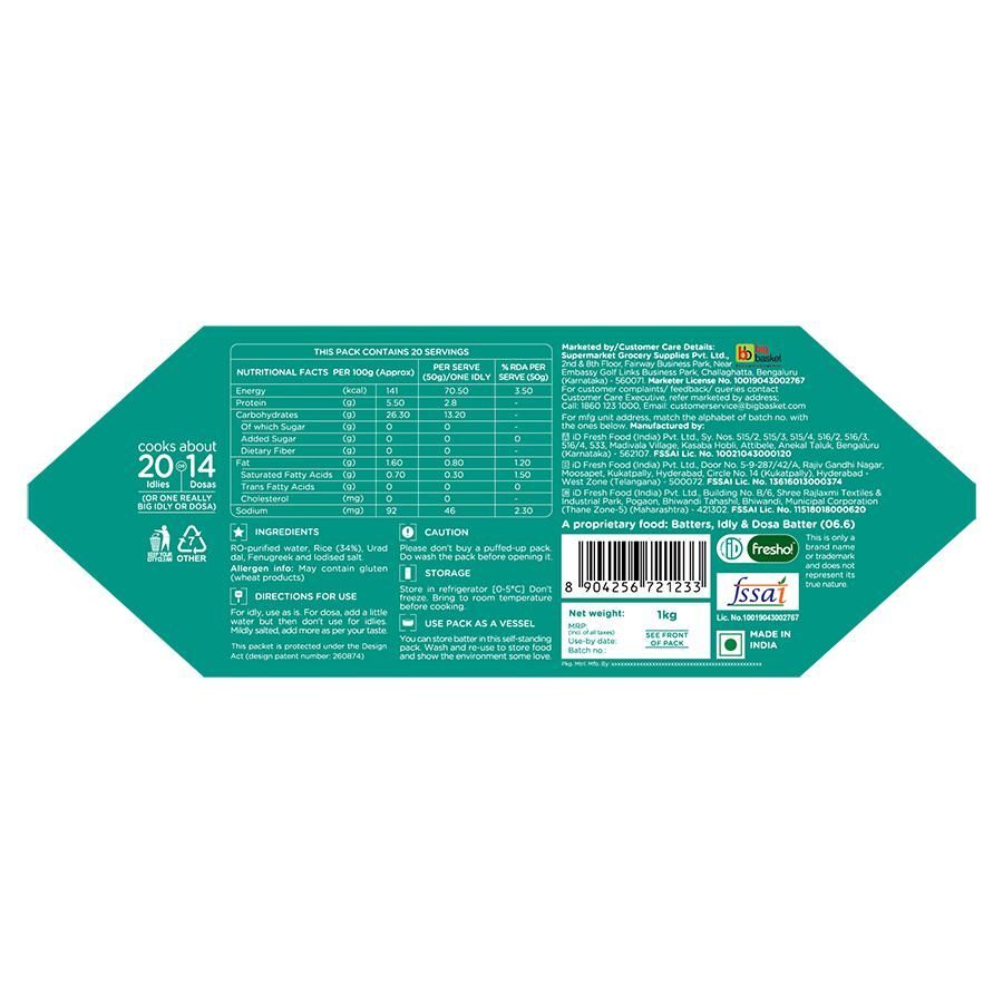 About the Product: The ID idli / dosa batter is a readymade mix which saves your time and energy to create a dosa batter from scratch. Typically, a dosa batter involves a three-step recipe which includes soaking the rice, grinding and fermenting it. But with this readymade batter, you can make crispy dosa and fluffy soft idlis at no time at all. Make crispy, golden-brown vadas in 3 easy-squeezy steps, with the path-breaking ID Vada maker pack. No more complicated batter recipes, no more messy hands & shapeless vadas. Now, dig into steaming crispy vadas right at home.