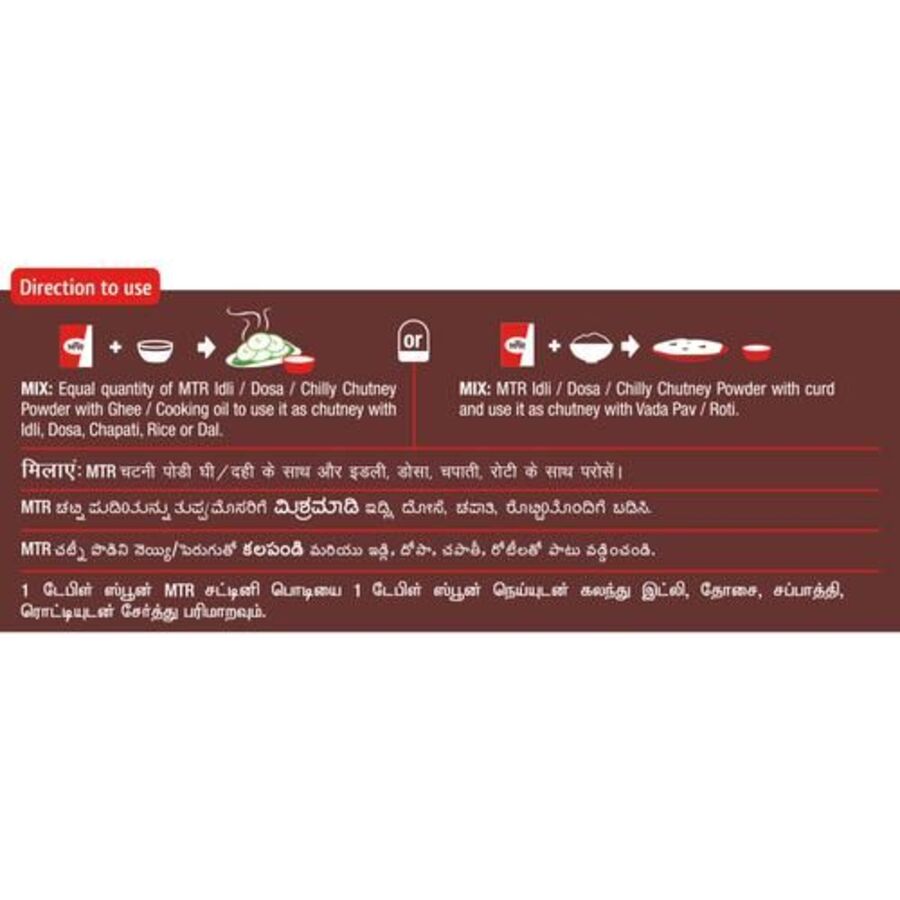 Chutney Powder can be a fine accompaniment for idli, dosa, vada pav, dal or chapatti. This instant tasty mix can be used to prepare a tangy spicy chutney. The chutney powder is prepared with the freshest of ingredients which are pounded to perfection to give you a smooth blend.