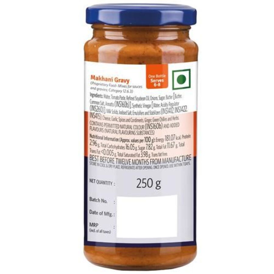 About the Product: Arguably Indias most loved gravy, you can now make choices of dishes using this one master gravy, from world favourite Dal makhani to Shahi paneer to Murg makhani, you can now enjoy your favourite restaurant-style Indian dishes in the comfort of your home with No Added Preservatives, Synthetic Colours and artificial flavours.