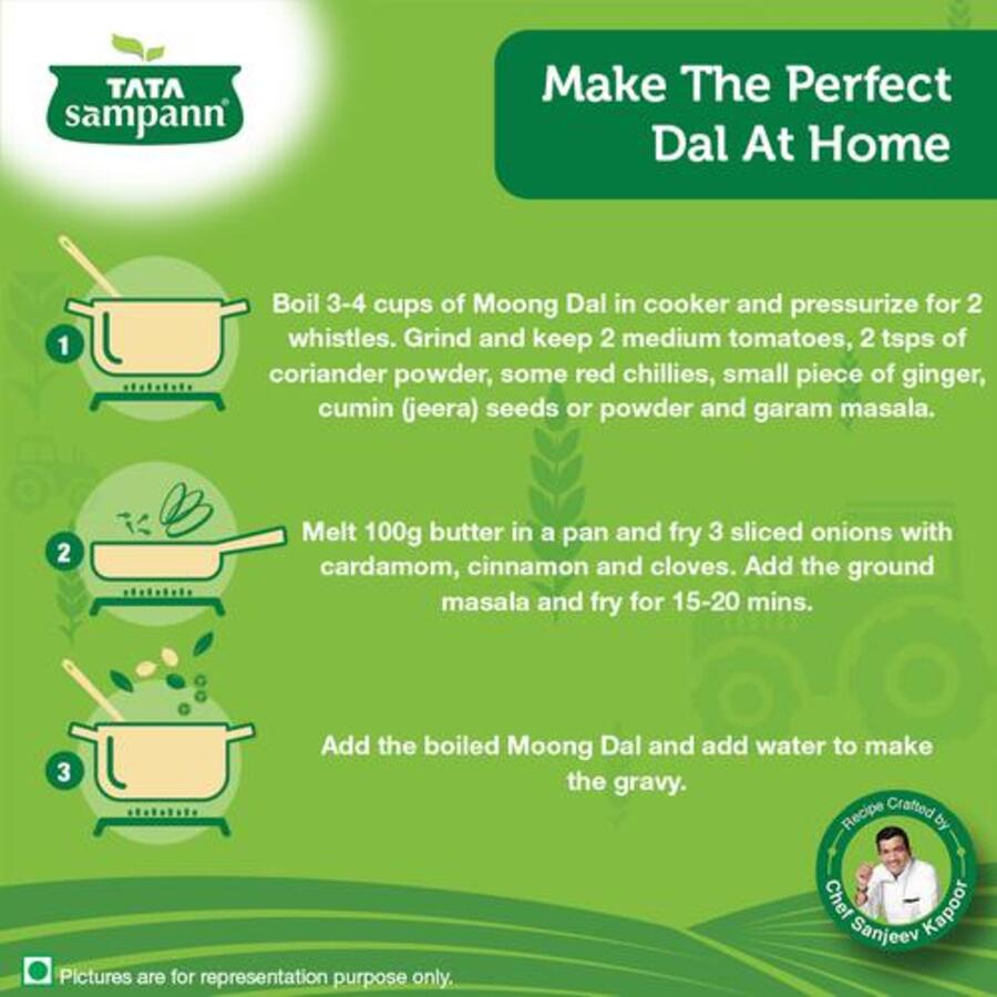 For most Indians, comfort food is always linked to easy-to-cook homemade meals and what can be the most convenient and quick to prepare dal. A staple in the Indian diet, Moong dal is a good source of protein. Essential in every household, Tata Sampann Moong dal is unpolished as it does not undergo any artificial polishing with water, oil or leather thereby retaining its goodness and wholesomeness. The 5-step process ensures that Tata Sampann Moong dal grains are uniform and of premium quality, giving you an all-natural, authentic taste. So, whenever you are in the mood to cook something easy and delicious, dive into the scrumptious taste of Tata Sampann pulses, and enjoy a lovely meal! Explore Tata Sampann Pulses range - Toor dal, Chana dal, Moong dal, Moong dal Chilka, Green Moong, Masoor dal, Masoor Small dal, Masoor Whole dal, Kali Masoor dal, Urad dal, Urad Whole dal, Urad Kali, Chawli (Lobia), Kabuli Chana, Kala Chana, Matki (Moth bean) and Rajma. Storage: Store in a cool and dry place. Transfer contents in an airtight container after opening.
